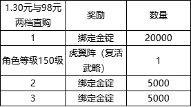 2. 第一档为累充10元,第一档满足条件后,再充20元可领取第二档奖励